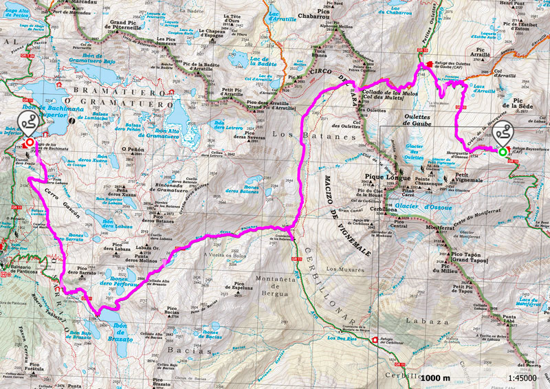 Etapa 5: Refuge Bayssellance, Hourquette d’Ossoue, Fontaine Centenaire, Refuge des Oulettes de Gaube, Collado de los Mulos, Cromlechs de los Batanes, Mallata Batanes, Collada Alta de Brazato, Ibón de Brazato y Refugio de los Ibones de Bachimaña