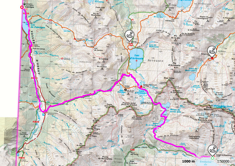 Etapa 7: Refugio de Respomuso, Embalse de Respomuso, Ibones de Arriel Bajo y Alto, Collado de Arriel, Lacs d’Arrémoulit, Refuge d’Arrémoulit, Coll d’Arrious, Cabane d’Arrious, Cabane du Caillou de Soques y Fabrèges