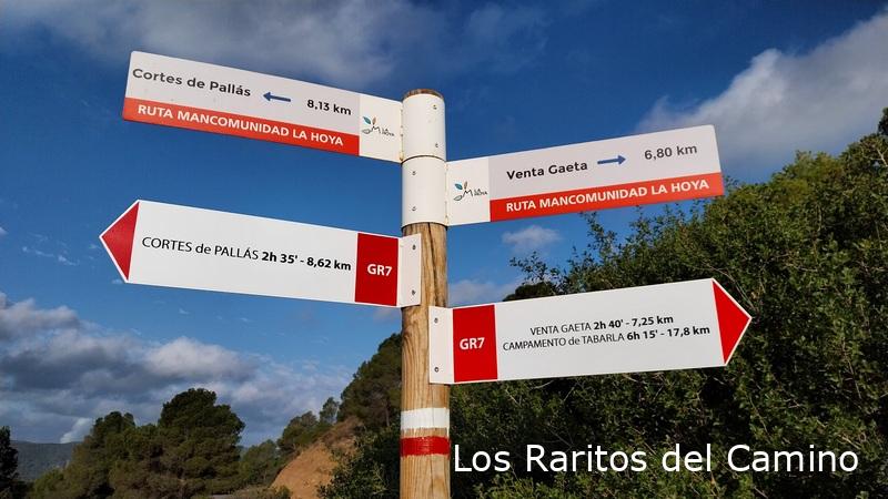 Casi hubiera sido mejor el recorrido lineal, nada, dejamos el coche en la carretera que va desde CV-428 al Castillo de Chirel, donde cogemos el recorrido del GR 7 para dirigirnos a Venta Gaeta, pasamos por El Picayo, La Cuesta de Espitel, Los Majadales, Las Víboras, llegando a Venta Gaeta.