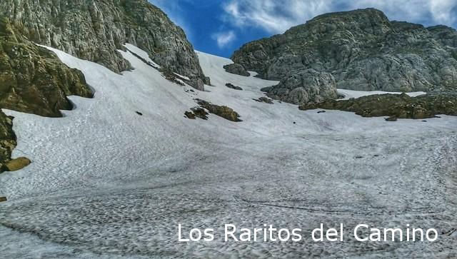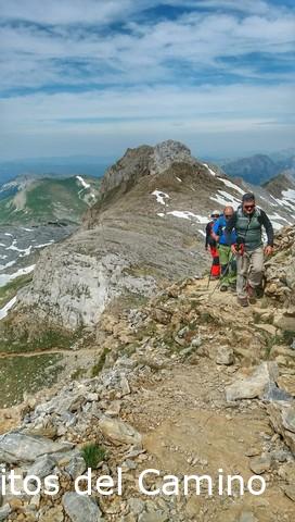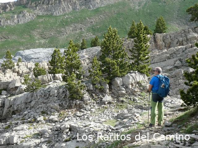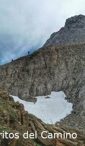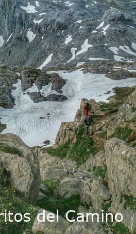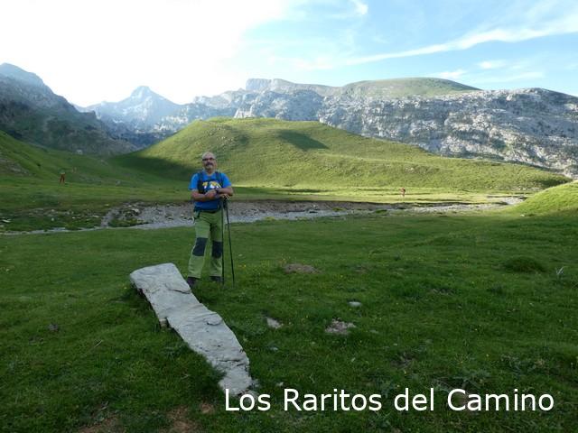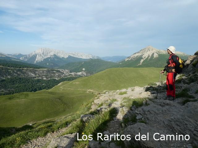 Desde la señal vertical, y ya sin marcas blancas y rojas, el camino va ascendiendo en diagonal en sentido NE, acercándonos a una barrera rocosa, a la cual, en un punto determinado (más o menos en la cota 2.000) hemos de subir en sentido N, y muy atentos a los hitos de piedra, para atravesar el lapiaz que vamos a encontrar, y descender de él, para entrar en un vallecillo muy estrecho que hay entre el lapiaz que hemos atravesado y el macizo que forman el Alto de Budogia con la Mesa de los Tres Reyes.