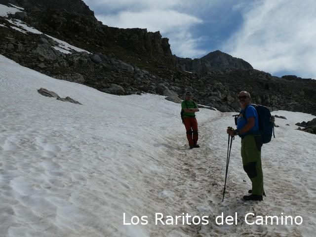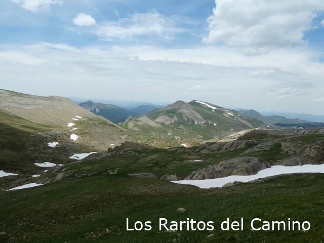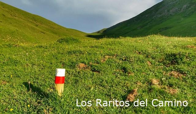 En el fondo de este vallecillo, que asciende de nuestra izquierda hacia nuestra derecha en sentido E-NE, hay una señal vertical sin placas (julio 2015). Desde aquí, hemos de ascender el valle siguiendo los hitos, que poco a poco, nos irán conduciendo hasta llegar a la cumbre de la Mesa de los Tres Reyes