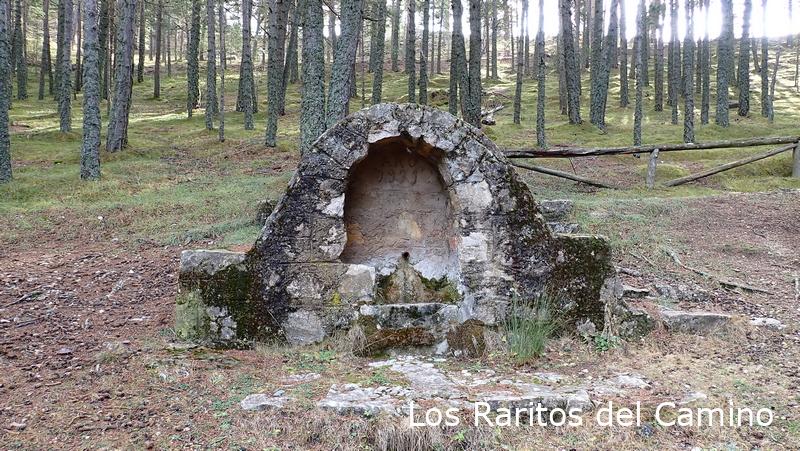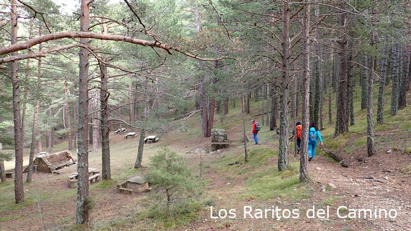 Una vez en el vértice Geodésico de Bandera, vemos la posibilidad de bajar directamente al Refugio del Hontalar, en un claro del bosque vemos la posibilidad de seguir una trocha que al final se convierte en una senda fitada que nos lleva a nuestro objetivo, el Refugio de Hontalar, pasamos por la fuente y descendemos por el barranco hasta llegar al Camino de Peñarroya, que nos lleva hasta la Cruz del Pobre, sólo había una cruz de madera, buscamos a ver si encontrábamos los restos de una cruz de piedra o el sitio donde hubiese estado la cruz, pero no vimos nada, en este punto dejamos el Camino de Peñarroya y el camino que nos lleva hasta el Camino del Aliagar.