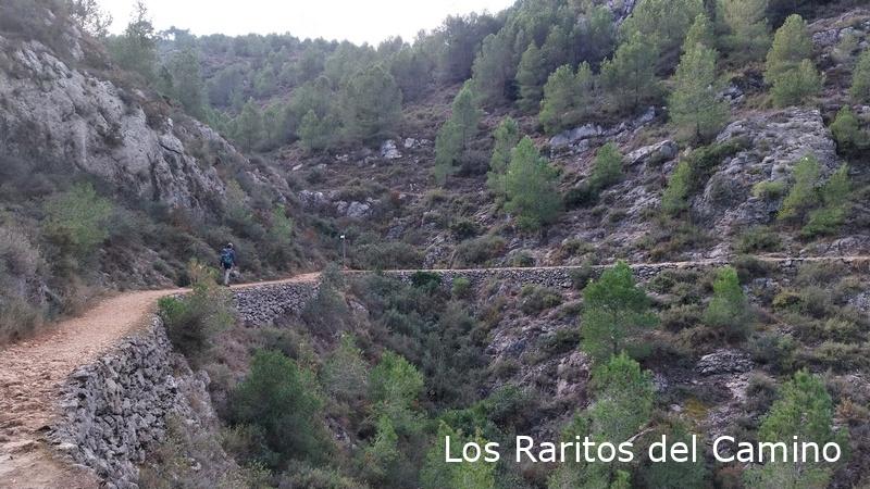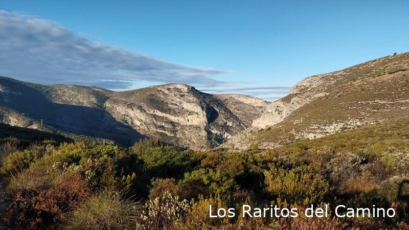 Seguimos nuestro camino cruzando el barranco para seguir el camino el Bancal Redó hasta la Font del Bancal Redó, reconozco que no la vimos, nos fijamos más en los restos del apeadero del tren, lo siguiente fue subir por la Solana de la Guerra por un sendero bastante empinado hasta el cordal de la Serra d’Agullent, desde este punto en dirección oeste nos encaminamos hacía el Alto de les Olles, para bajar a la Senda dels Enginyers que nos lleva de nuevo al comienzo del camino.