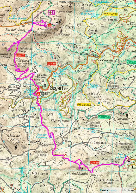 Santo Espíritu, GR 10, Pico de la Águila, GR 10, Coll del Campaner, Segart, el Garbí, Puntal de l’Abella, GR 10, Segart, GR 10, Coll del Campaner, GR 10 y Santo Espíritu