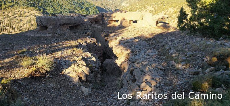 Desde aquí el camino es fácil, sólo tenemos que recorrer el barranco de la Hoz, nos iremos encontrando un corral aprovechando un recoveco o balma en la roca, la fuente de Cavero y algún que otro corral, además de muchas sabinas por el camino, lo seguimos hasta llegar a la unión del barranco del Tajo y de la Hoz, aun seguimos por el barranco del Tajo hasta llegar a un camino que siguiendolo por la derecha nos llevará al corral de la Laguna, junto a este corral encontramos el inicio para llegar a las posiciones militares, en esta zona se encuentran un número elevado de posiciones, incluidos los puestos de mando del batallón.