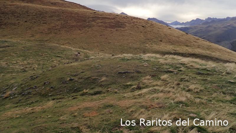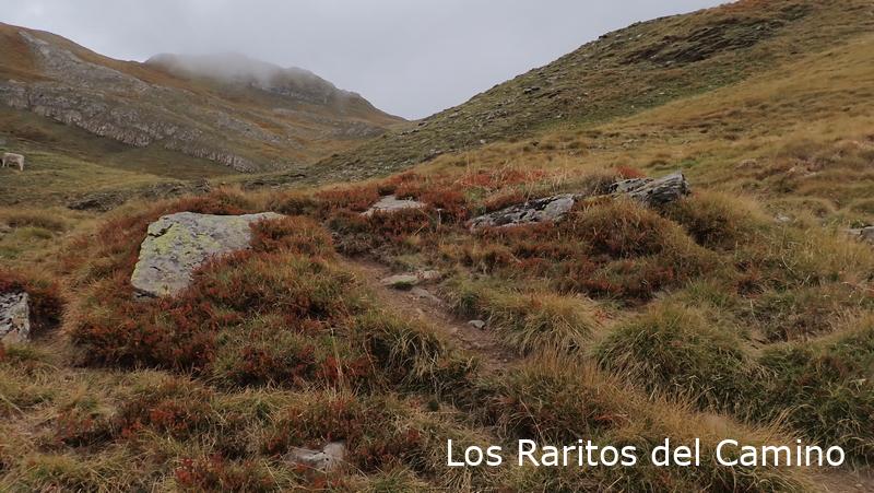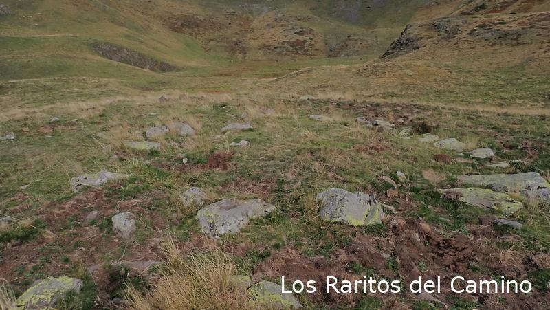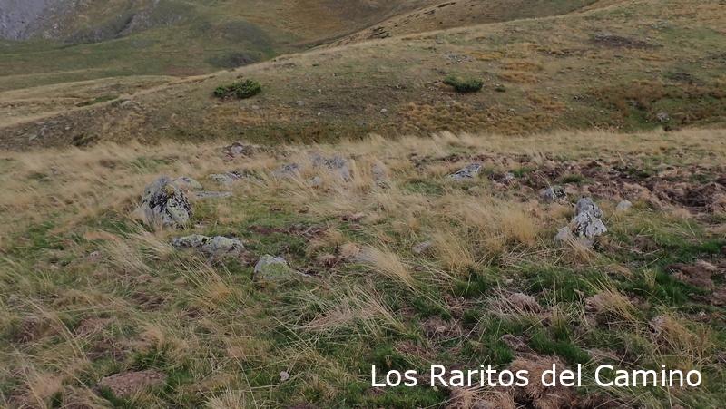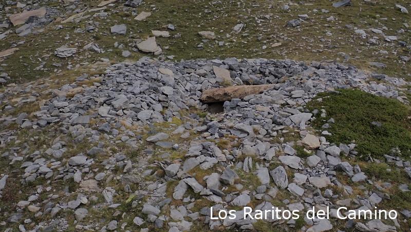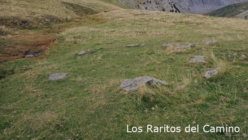 En vez de ir directos al ibón que es la ruta normal, nosotros hemos cogido el camino que sube al collado de Palo para ver los monumentos megalíticos, bueno, más que ver imaginar, como me dice un amigo, si antes no has visto la foto es muy difícil encontrarlos, entre que no están señalizados y que la mayoría son poco evidentes, no hay mucho que hacer, aunque reconozco que después de todo un día buscando restos al final los ves o algunos te los imaginas. En el collado o collau de Arañón hemos visto o intuido los primeros, la verdad es que luego al comprobarlos en la página de Luberri.net hemos tenido suerte y son bastantes los que nos ha confirmado lo que hemos visto, los de la zona de Las Foyas de Arañón, reconozco que el siguiente no he sido capaz de identificarlo, el dolmen de Las Foyas de Palo, hice fotos a algunas losas y podría ser que fueran, pero no pongo la mano en el fuego.