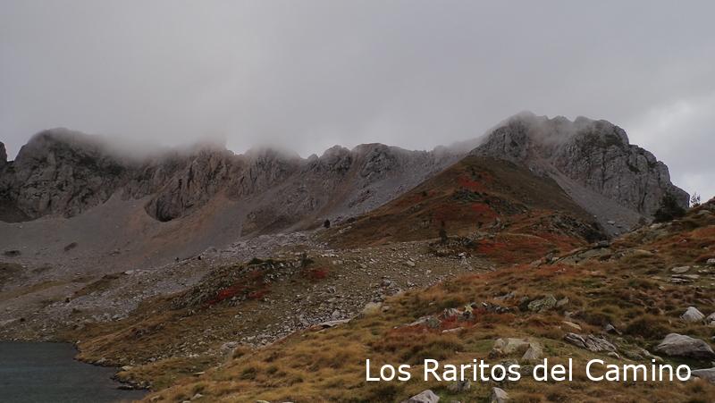 En este punto hemos decidido cambiar el recorrido, nuestra idea era subir el Mallo a Ralla y el d’a Chorrota, pero visto como teníamos el tiempo no hemos querido arriesgar, algo hay que dejar para la siguiente vez, por lo que íbamos a bajar al camino que nos lleva al ibón de Acherito, pero hemos visto que en el TopoPirineos salía un camino que nos llevaba al mismo sitio, pero sin bajar para luego subir, así que nos hemos metido y ha merecido la pena, directos al ibón. El ibón sin duda merece la pena, sobre todo en días un poco más soleados que el de hoy, luego hemos seguido a buscar nuestro siguiente objetivo, el dolmen del Barranco de Acherito, sin suda el mejor conservado, merece la pena verlo, lo que no hemos visto son los otro monumentos megalíticos que hay al lado, nada, habrá que volver.