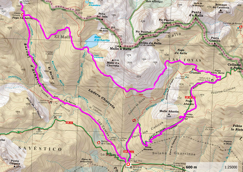 Nada, ya sólo nos queda llegar a La Mina, para ello seguimos el Camino de Francia por l’Acherito en el barranco de las Ferrerías o Barcal d’Acherito que nos lleva directos al comienzo del recorrido.