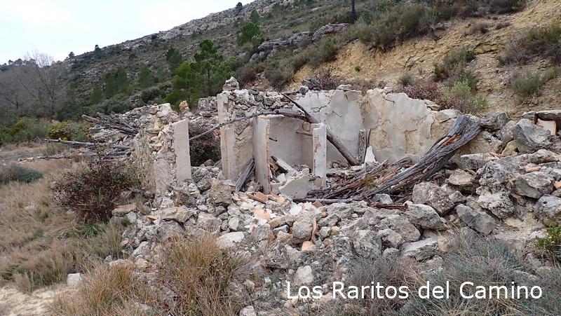 El inicio de la ruta en Los Tres Mojones, límite de los tres términos: Teresa de Cofrentes, Bicorp y Ayora, para llegar a este punto hay que subir por el Carril de El Caroig desde el Carril de Benefetal, en vez de subir directamente a El Caroig, cogí el Camino de la Cabeza Pinosa que rodea por bajo la cima, una vez pasado el barranco del Roble me encuentro con las nuevas marcas del sendero GR 7, sigo hasta llegar al camino que me lleva a la casa del Cabiró en la Rambla de la Argongeña, pasando junto a la fuente del Cabiró, en este tramo coincido con el PR-CV 446 que sube a El Caroig por otro recorrido, subo por la Cañada del Chilano o de Máximo, pasando por las casas de Chilano, Manglano y de Máximo, está última casa la verdad es que me sorprendió mucho, no esperaba encontrar una casa de tal envergadura en mitad de el Macizo de El Caroig, es una lástima que este tipo de edificaciones se eche a perder, pero es lo que tiene el paso del tiempo.
